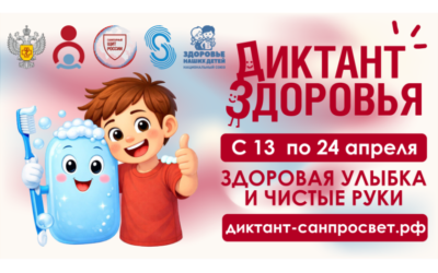 13.04.2026Стартует первый этап Всероссийской акции «Диктант здоровья»: проверяем знания о гигиене полости рта и чистых руках С 13 по 24 апреля 2026 года Роспотребнадзор запускает первый тематический трек Всероссийской санитарно-просветительской акции «Диктант здоровья» — «Здоровая улыбка и чистые руки». Модератором проекта выступает ФБУН «Новосибирский НИИ...